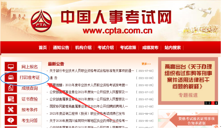 2021年甘肃一建考试准考证入口:中国人事考试网(http://www.cpta.com.cn/index.html)