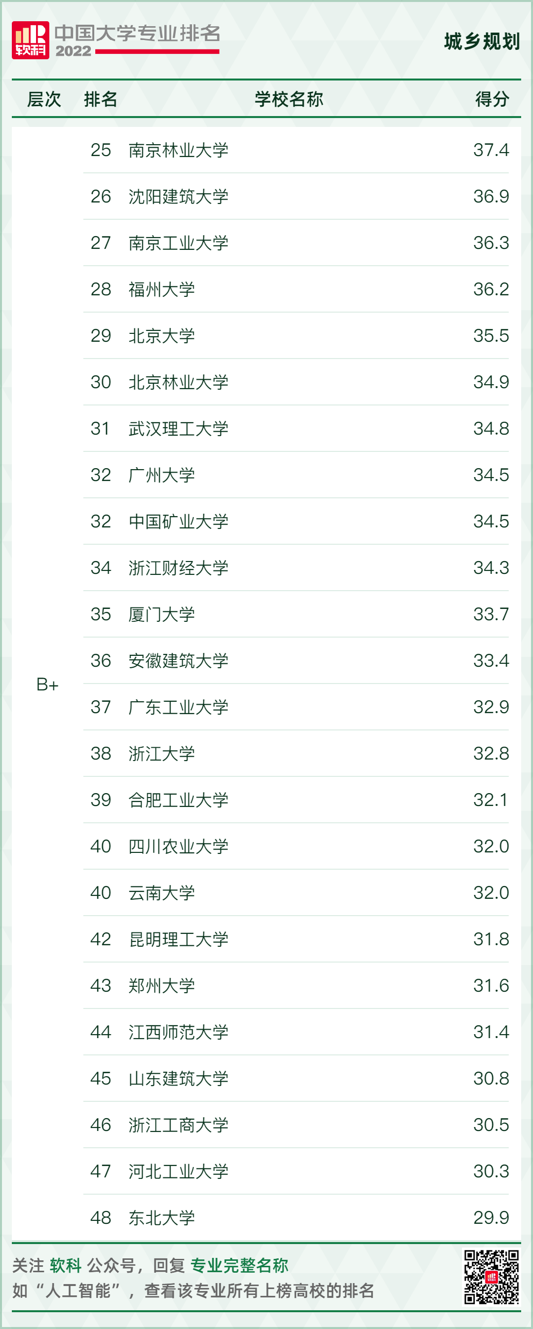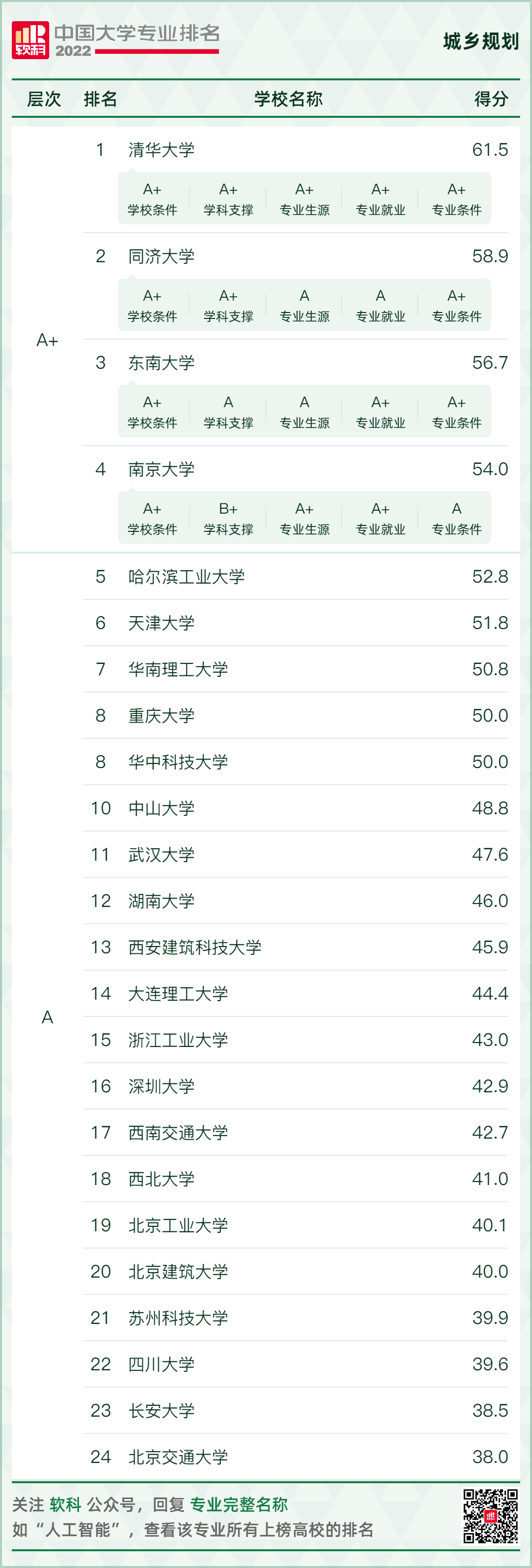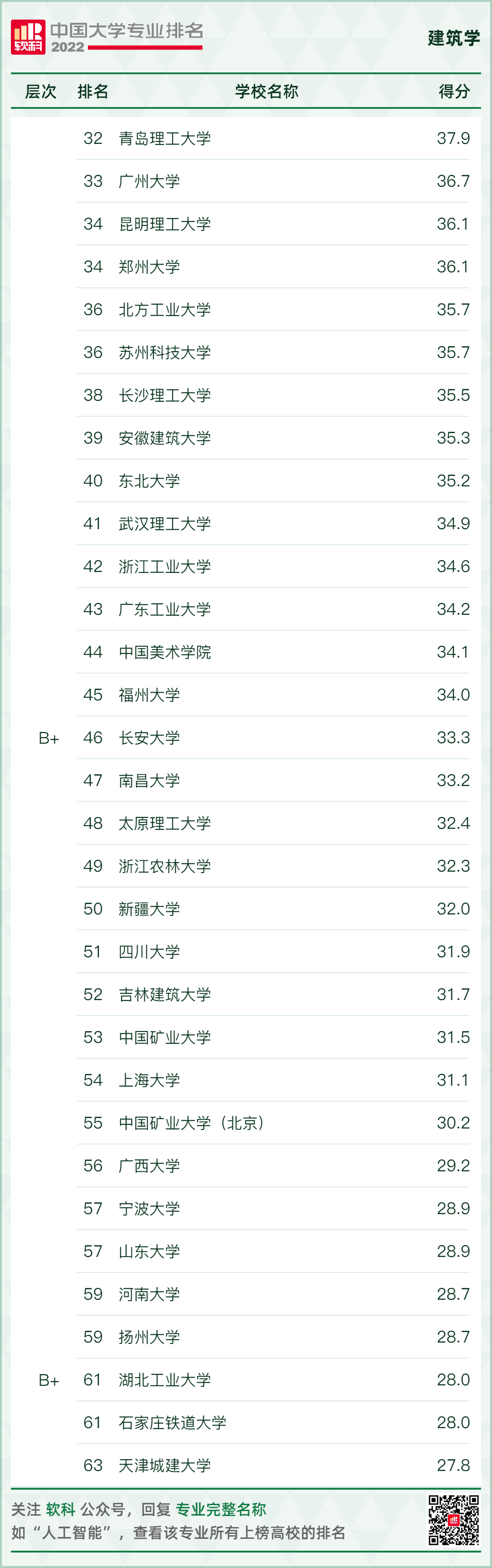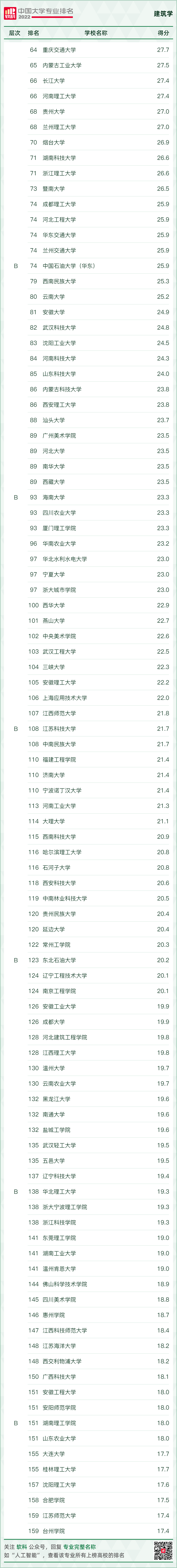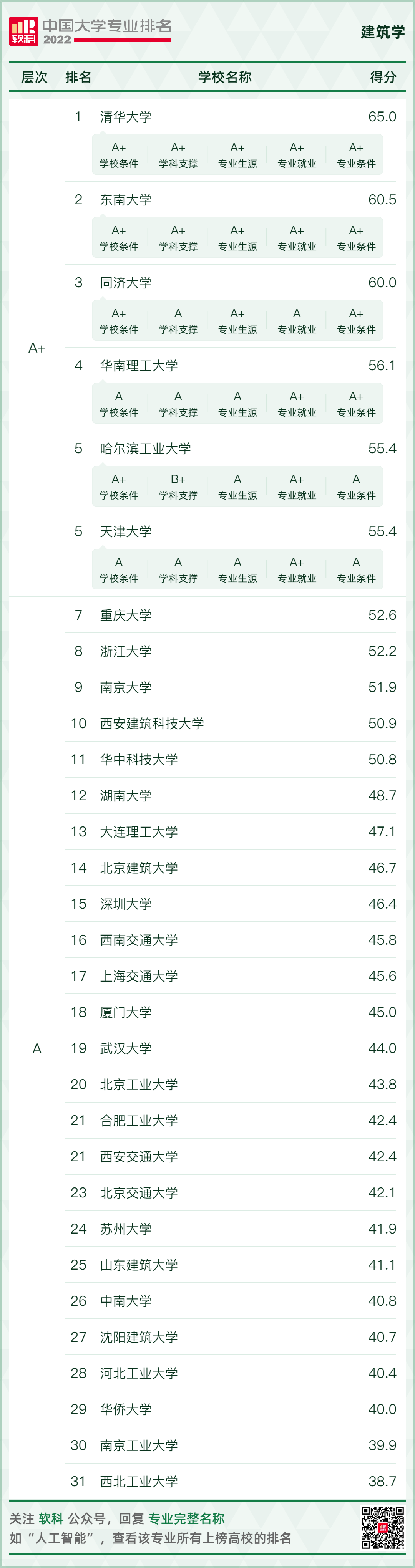 2022年建筑学专业排名发布!2022-06-23 16:52:11